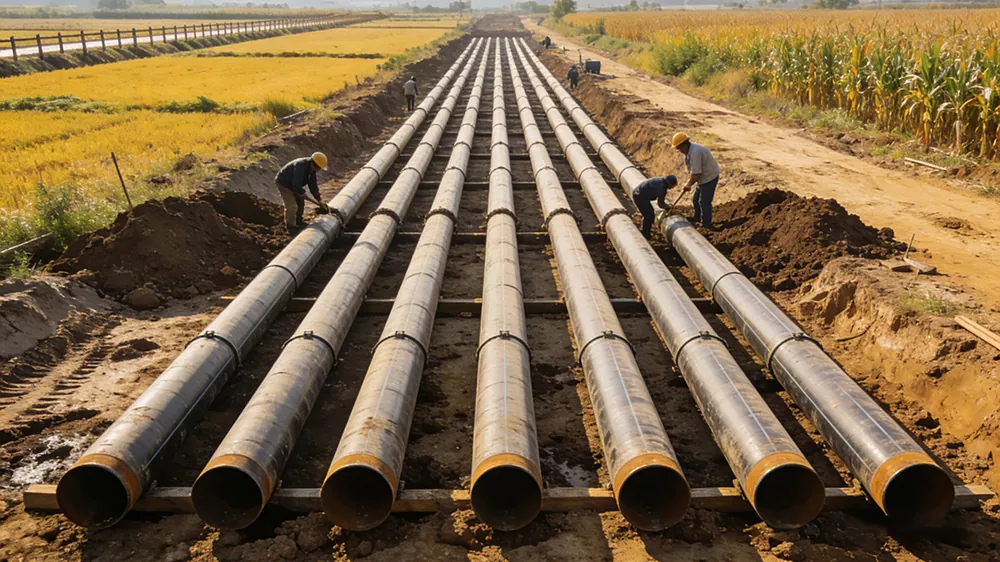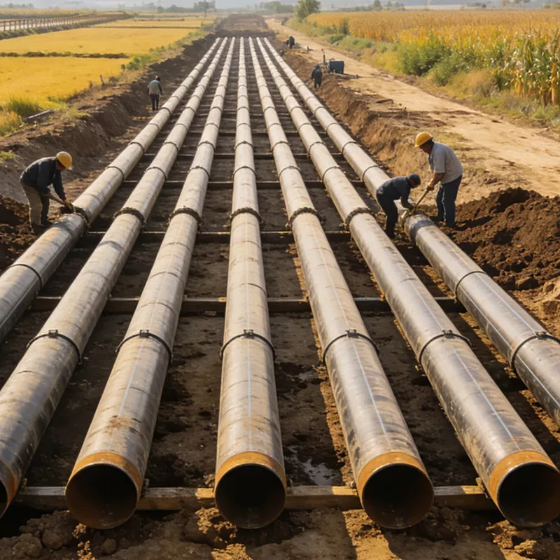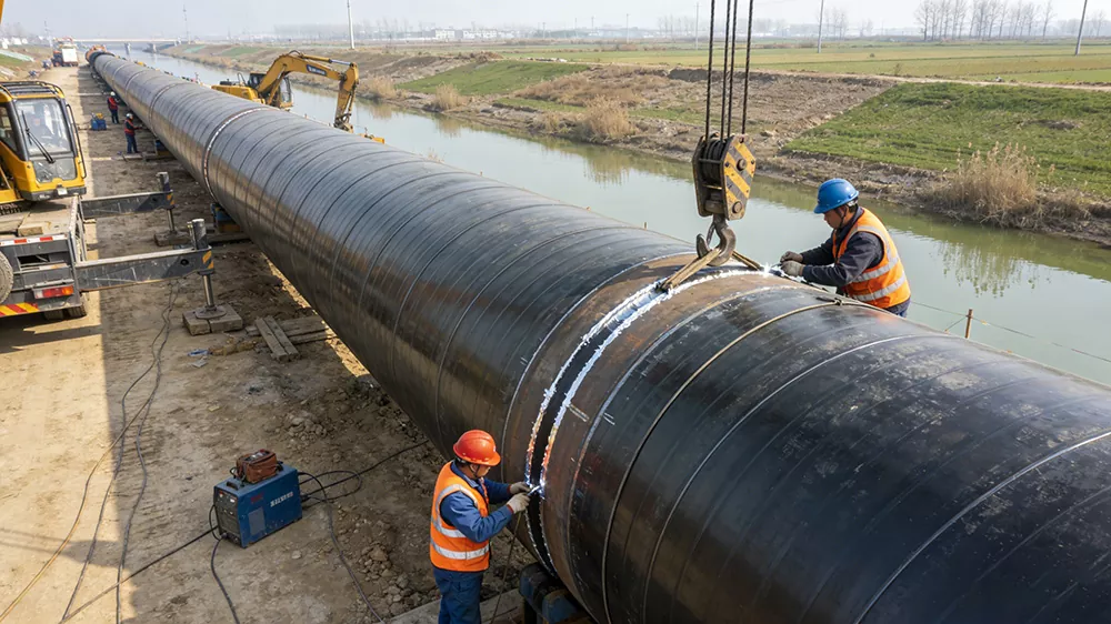 Použiteľné scenáre: Rozsiahle projekty na odvádzanie vody, projekty prenosu vody, projekty protipovodňovej ochrany a odvodňovania, hlavné potrubia na zavlažovanie poľnohospodárskej pôdy, projekty zásobovania vodou pitnou vodou, projekty zásobovania ostrovnou vodou atď. Hlavnými požiadavkami sú vysoká prietoková kapacita, odolnosť proti korózii a odolnosť voči tlaku vody. Môžu byť prispôsobené zložitému prostrediu, ako sú korytá riek, pôdy ovplyvnené soľou atď. Môžu účinne odolávať vodnej erózii a geologickým poklesom, pričom zabezpečujú stabilný prenos vodných zdrojov a zaručujú bezpečnú prevádzku projektov na ochranu vôd. Hrajú dôležitú podpornú úlohu v kľúčových národných projektoch ochrany vody. Popis scény: Na stavenisku projektu Jinghai Water Diversion Project sa na pokládku hlavného potrubia používajú špirálové rúry s veľkým priemerom. Rúry prechádzajú riekami alebo poľnohospodárskou pôdou a pracovníci vykonávajú tesniace ošetrenie rozhrania. Na mieste projektu zásobovania ostrovnou vodou sa používajú špirálové rúry s veľkým priemerom s antikoróznou technológiou 3PE, aby odolali erózii morskou vodou a dosiahli prepojenie vodných zdrojov medzi ostrovom a pevninou.
